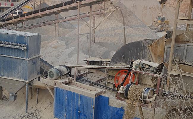 主要設(shè)備:振動給料機、重錘破碎機、錘式整形機、圓振動篩、皮帶輸送機等。