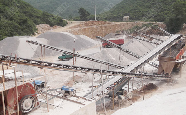主要設(shè)備:GZD-650×2300振動(dòng)給料機(jī)、DLPC1308錘式破碎機(jī)、DLXPC0808整形破碎機(jī)、2YK1230雙層振動(dòng)篩、3YK1230多層圓振動(dòng)篩、皮帶機(jī)等