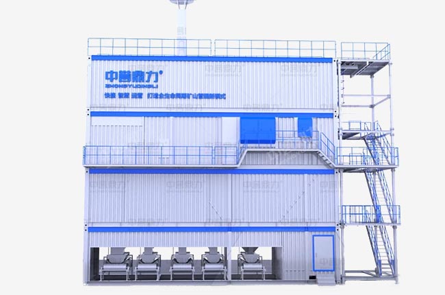 二層模塊內(nèi)部有抽風(fēng)風(fēng)道、振動篩前料倉(粗料)、振動篩下料倉(細料)、除塵器下料倉;