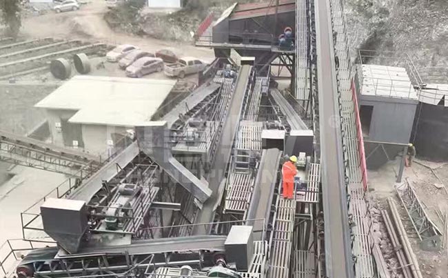 粗碎車(chē)間對(duì)毛料選擇加工,主要控制毛料的含泥量是否標(biāo),毛料的含泥量應(yīng)根據(jù)該系統(tǒng)的處理能力和毛料的泥性來(lái),毛料不允許含泥塊和泥結(jié)石。毛料的含泥量大于5%,會(huì)影響成品的質(zhì)量和增大系統(tǒng)的運(yùn)行成本;毛料含有未經(jīng)風(fēng)化的泥塊及泥結(jié)石,被破碎后分解在半成品中,篩分及洗石機(jī)無(wú)法處理干凈,這些泥塊及泥結(jié)石就進(jìn)入成品中,嚴(yán)重影響了成品的質(zhì)量;毛料的含泥在5%-10%時(shí),可增加二次洗泥設(shè)備;含泥量大于10%時(shí),應(yīng)將小于30mm的料作為廢料處理,廢料輸送到棄渣堆,再用車(chē)輛運(yùn)輸至棄渣場(chǎng),解決毛料質(zhì)量問(wèn)題。