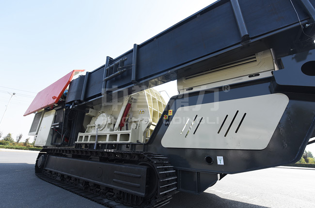 移動式破碎機底盤采用履帶式鋼性船型結構,強度高,接地比壓低,能適應復雜地形。其主要特點就是可以移動式作業(yè),行走自如,轉場更方便。