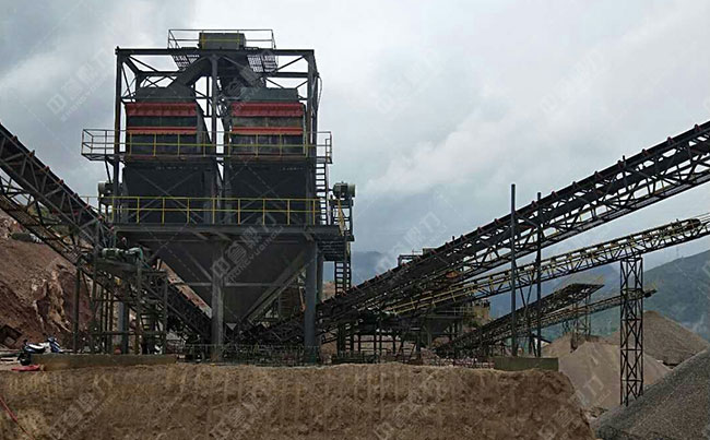 主要設(shè)備:振動(dòng)給料機(jī)、重型錘式破碎機(jī)、雙轉(zhuǎn)子制砂機(jī)、圓振動(dòng)篩等。